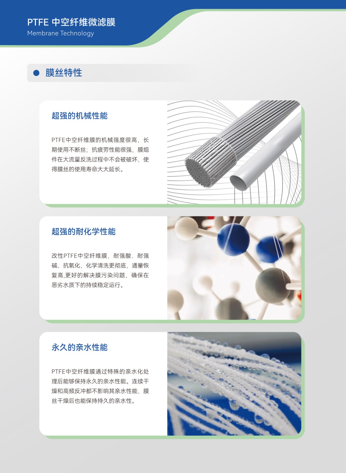 工作原理:PTFE中空纖維簾式膜過濾是一個壓力驅(qū)動的膜分離過程,產(chǎn)水方式為負壓抽吸或重力靜壓出水。應(yīng)用領(lǐng)域:1、大型市政生活污水深度處理;2、垃圾滲濾液。