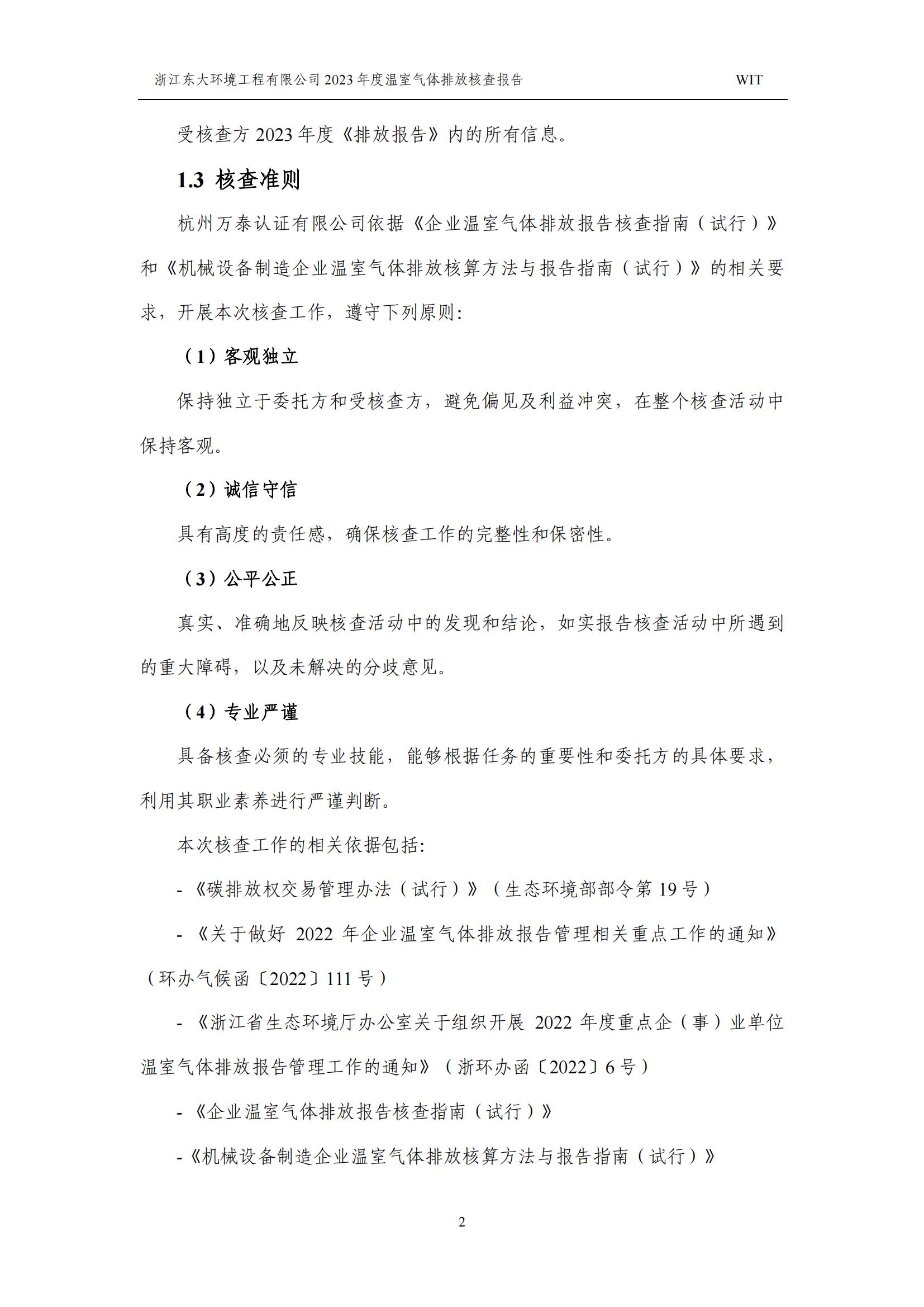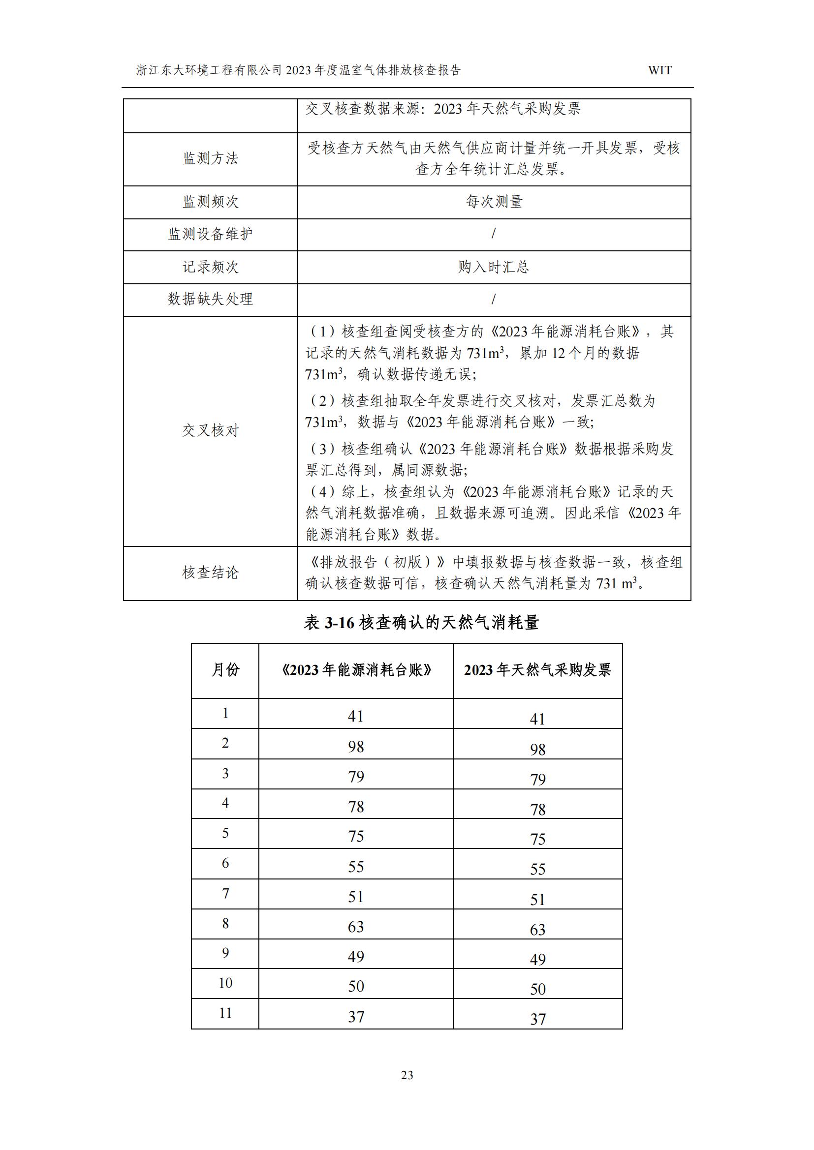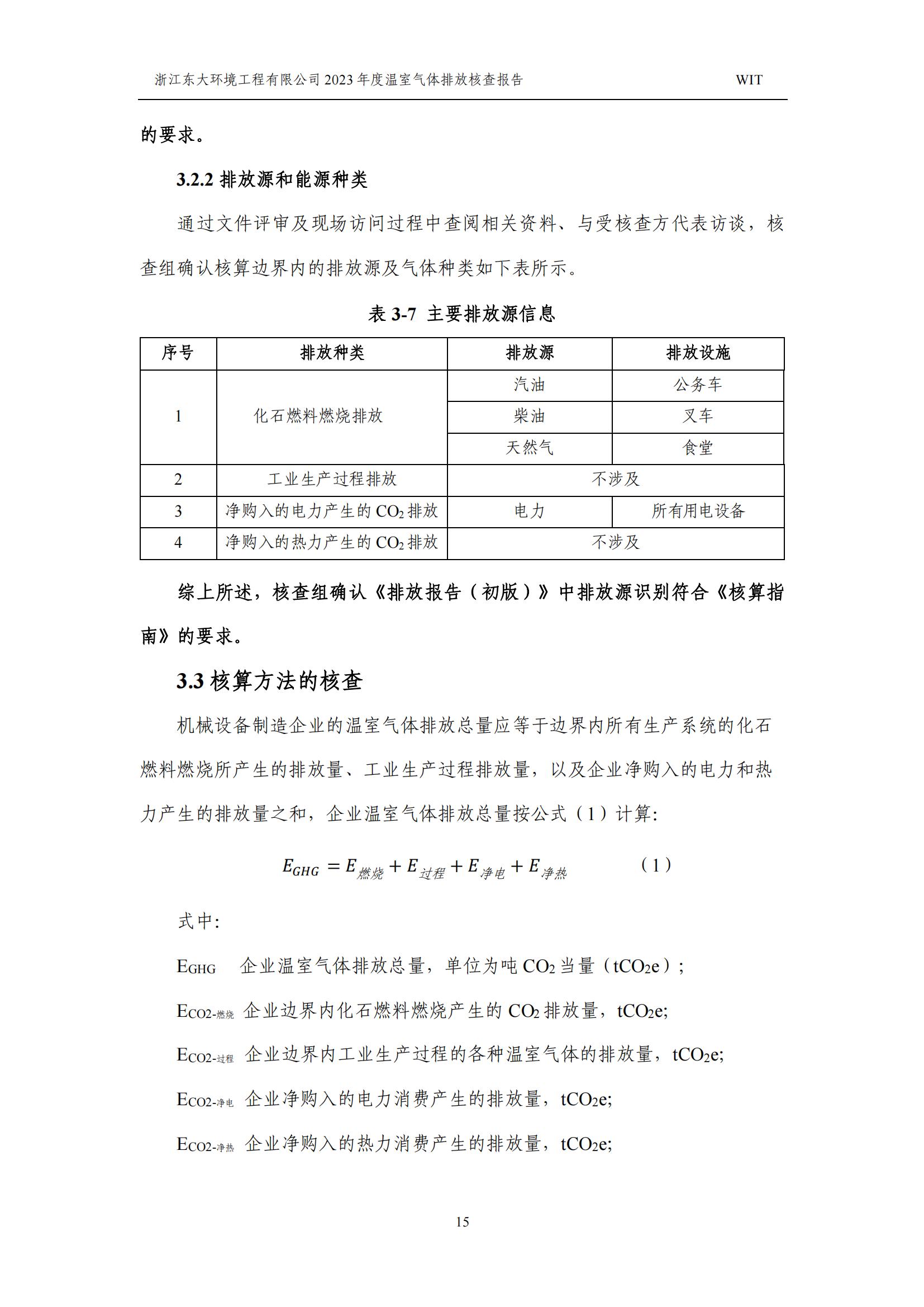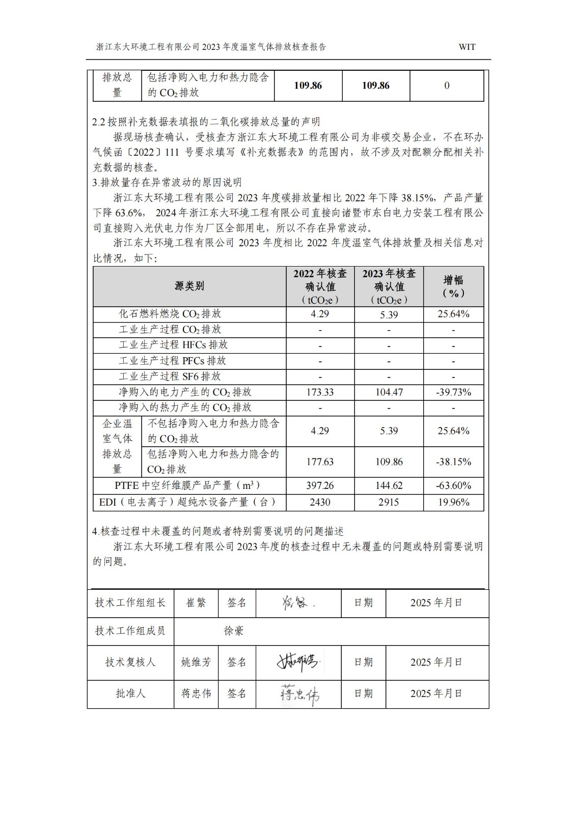 浙江東大環(huán)境工程有限公司2023年溫室氣體排放核查報告