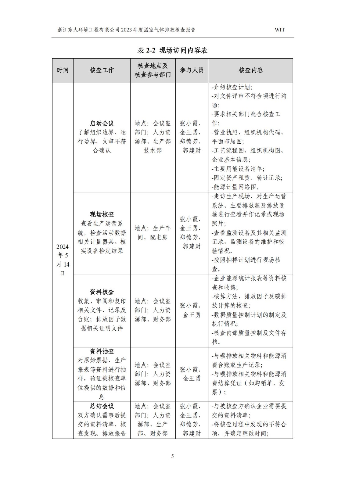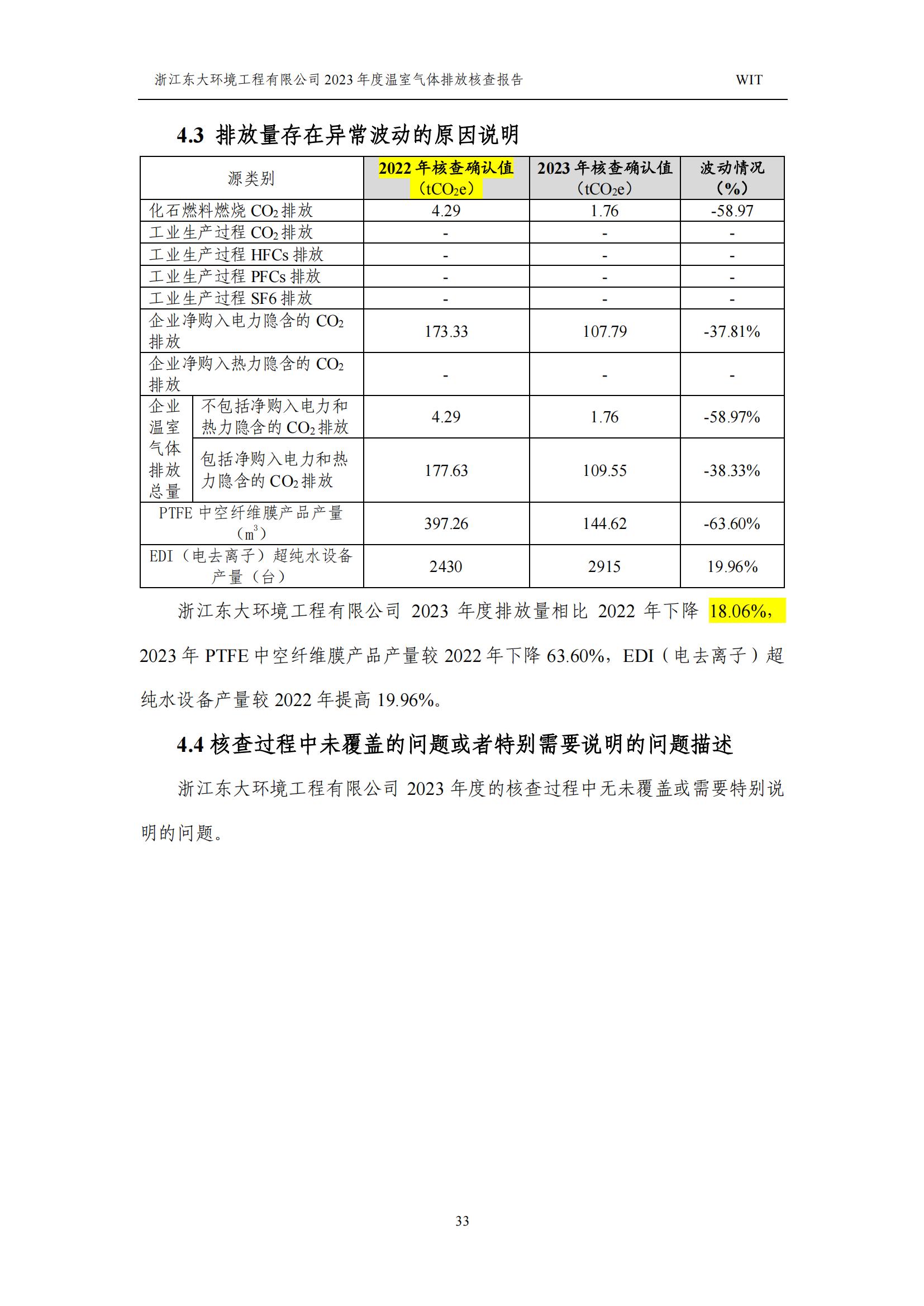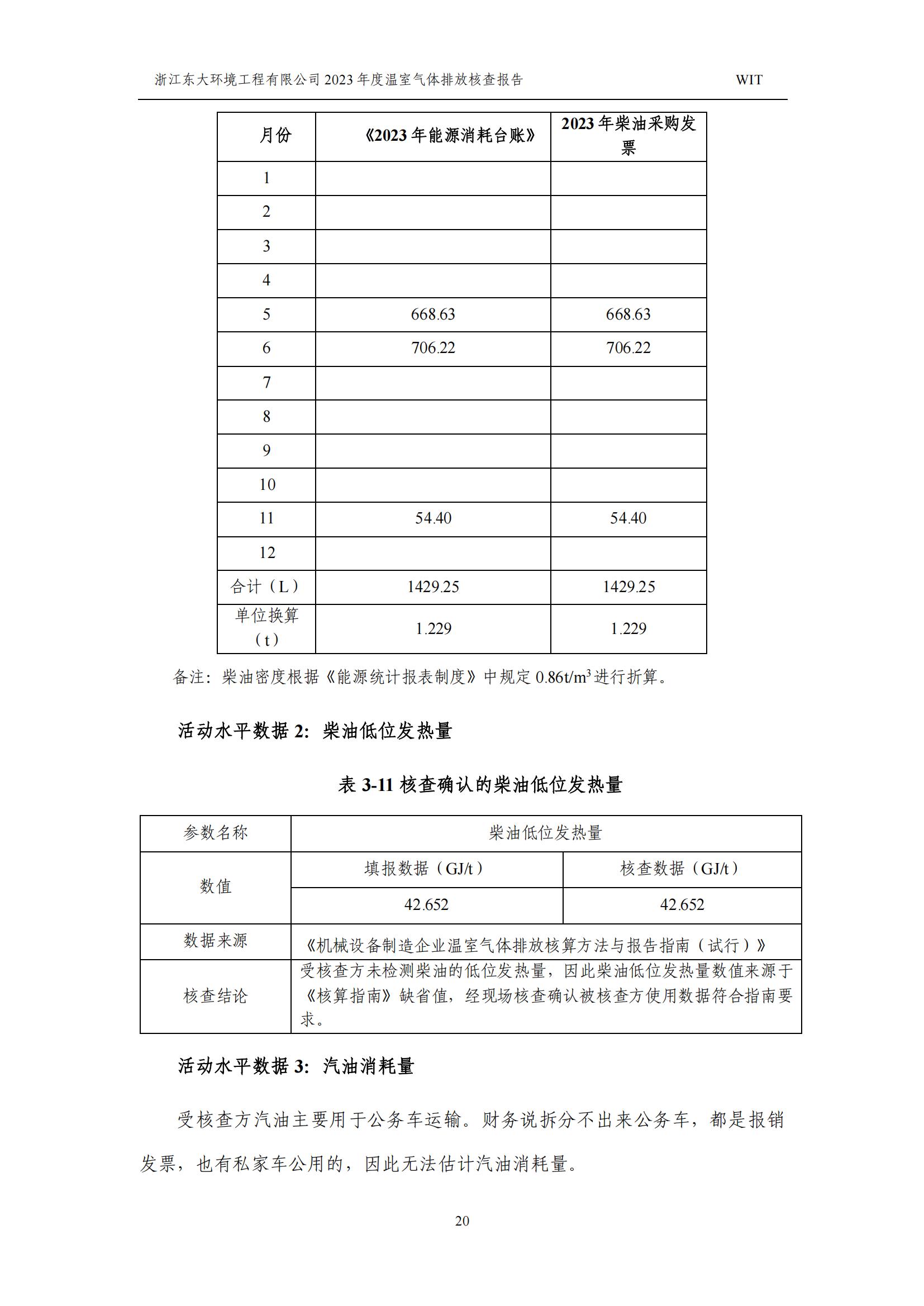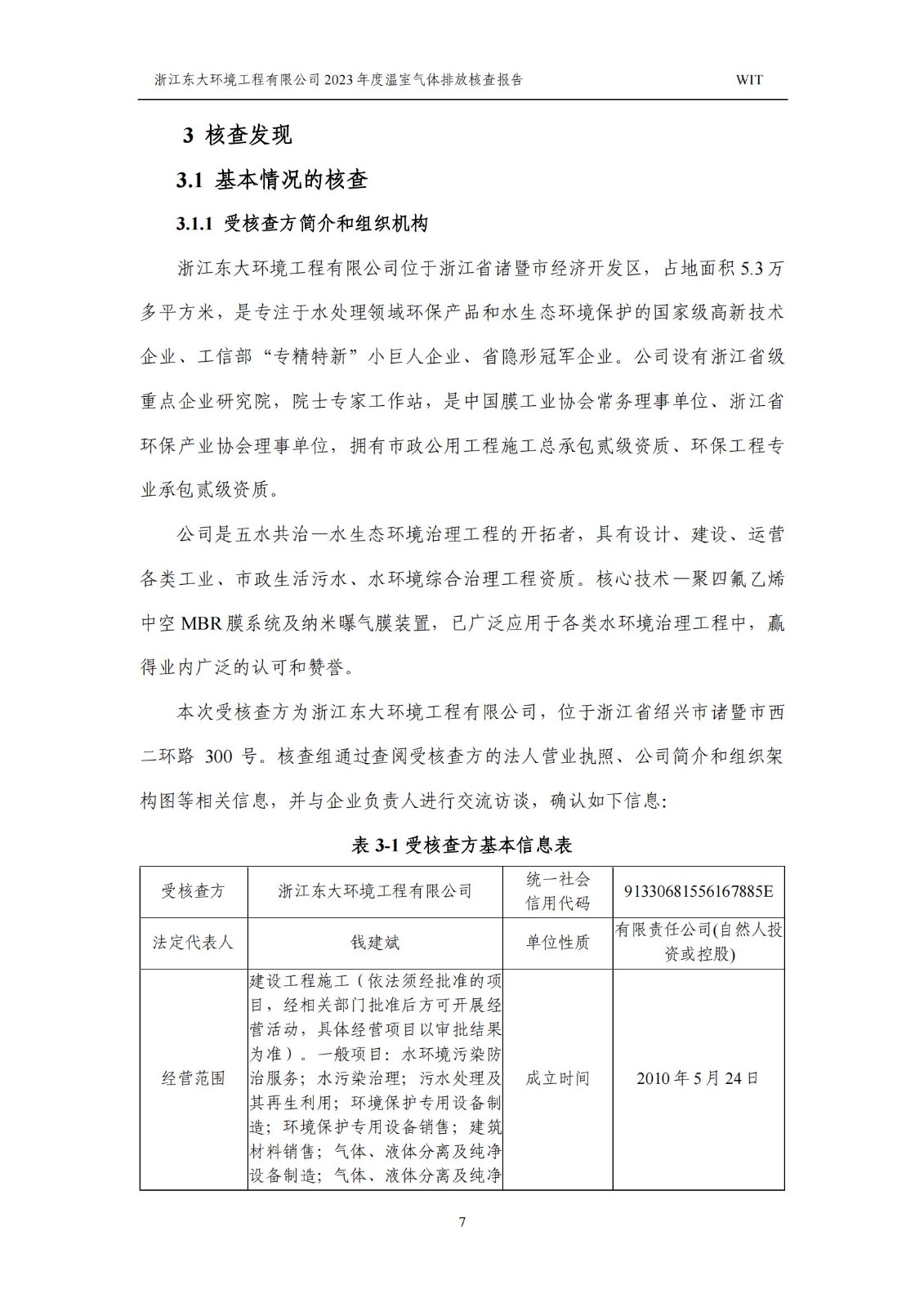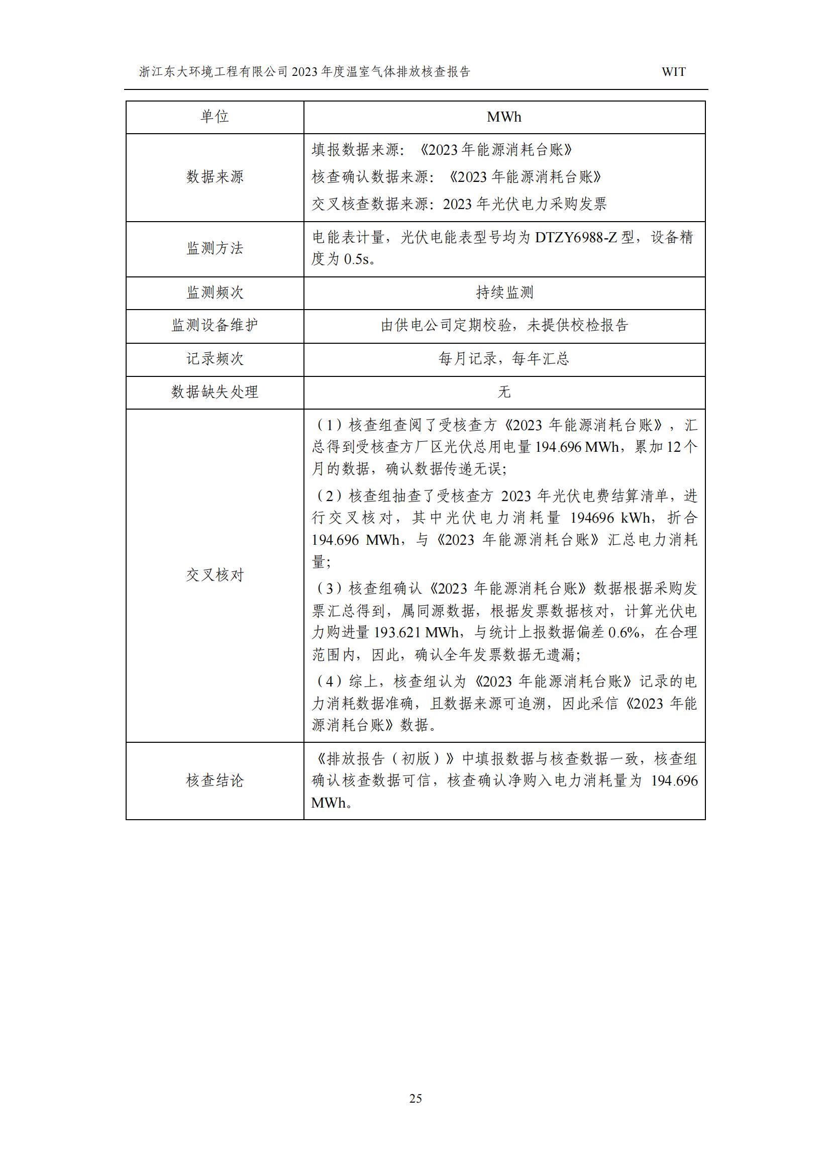 浙江東大環(huán)境工程有限公司2023年溫室氣體排放核查報告